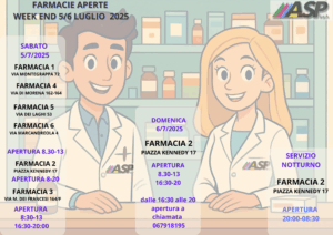 ASP Spa comunica l’orario delle farmacie di turno del week end del 5 e 6 Luglio  2025