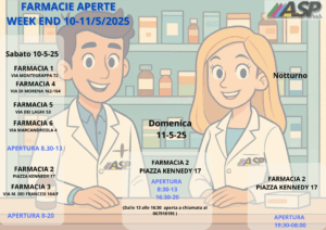 Asp spa comunica le farmacie di turno durante il week end del 10-11 Maggio 2025