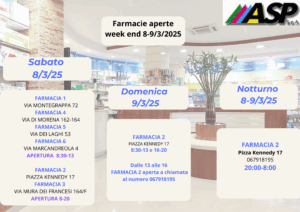 Asp Spa comunica l’orario di apertura delle proprie farmacie durante il week-end dei giorni 1 e 2 Marzo 2025
