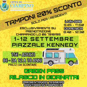Nella costante ricerca di migliorare i servizi alla cittadinanza ASP Spa comunica che dal 1 al 12 settembre sarà possibile effettuare , esclusivamente su prenotazione, il tampone diagnostico per il Covid-19 e , contestualmente, verrà rilasciato in giornata il green pass obbligatorio dal 6 agosto per l’accesso ai luoghi al chiuso, come bar o ristoranti, ma anche palestre, piscine, musei e concerti secondo quanto previsto e contemplato dal Decreto-legge 6 agosto 2021, n. 111 – Misure urgenti per l’esercizio in sicurezza delle attivita’ scolastiche, universitarie, sociali e in materia di trasporti